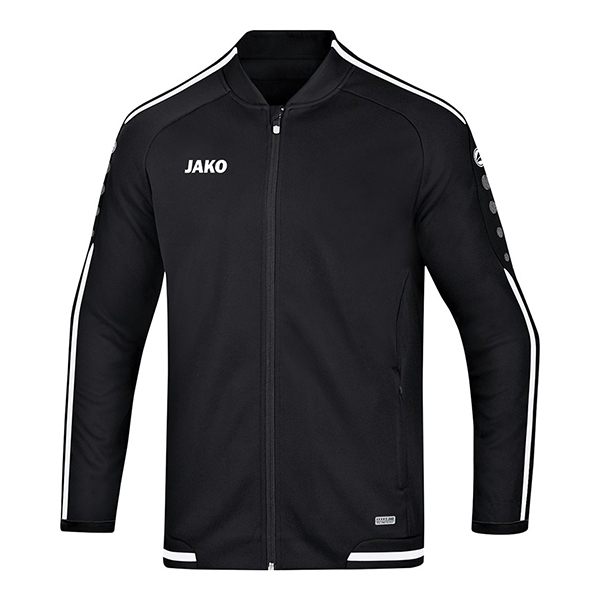Shiny-Polyester-Tricot, Seitentaschen mit Reißverschluss, Zweifarbige Reißverschlussanhänger, Zippergarage, Jacken- und Ärmelabschluss mit Ripp, Performance Label, Kontraststreifen an Ärmeln, Schultern und Saum