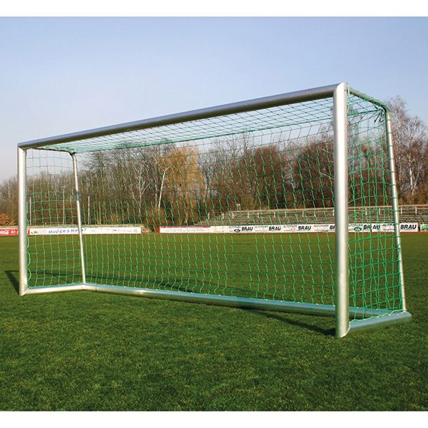 Tor und Bodenrahmen aus Alu Ovalprofil 120×100, FIFA – DFB – Vorschrift, DIN-EN 748, GS geprüft mit Antikipp Bodenverankerung, Farbe:silber