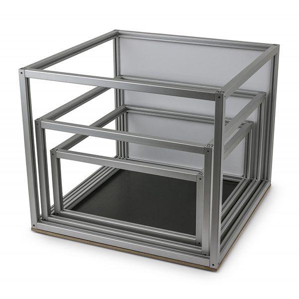 aus Aluminiumstreben und Siebdruckplatten mit rutschsicherer Standfläche.