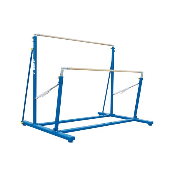 Die Barrensäulen verfügen über eine Höhenverstellung in 50 mm Schritten von 2000 bis 2600 mm oberer Holm und 1200 bis 1600 mm unterer Holm. Breitenverstellung von 530 bis 1150 mm mit bedienungsfreundlichem Lochraster-System durch Distanzhalter mit Schnellverstellung.