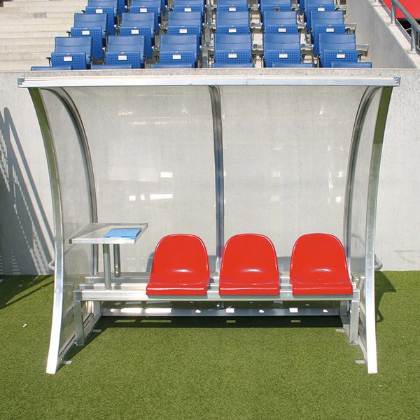 Spielerkabine, Breite 2,5 m, 4 Sitze,zzgl. integrierten Schreibtisch mittig